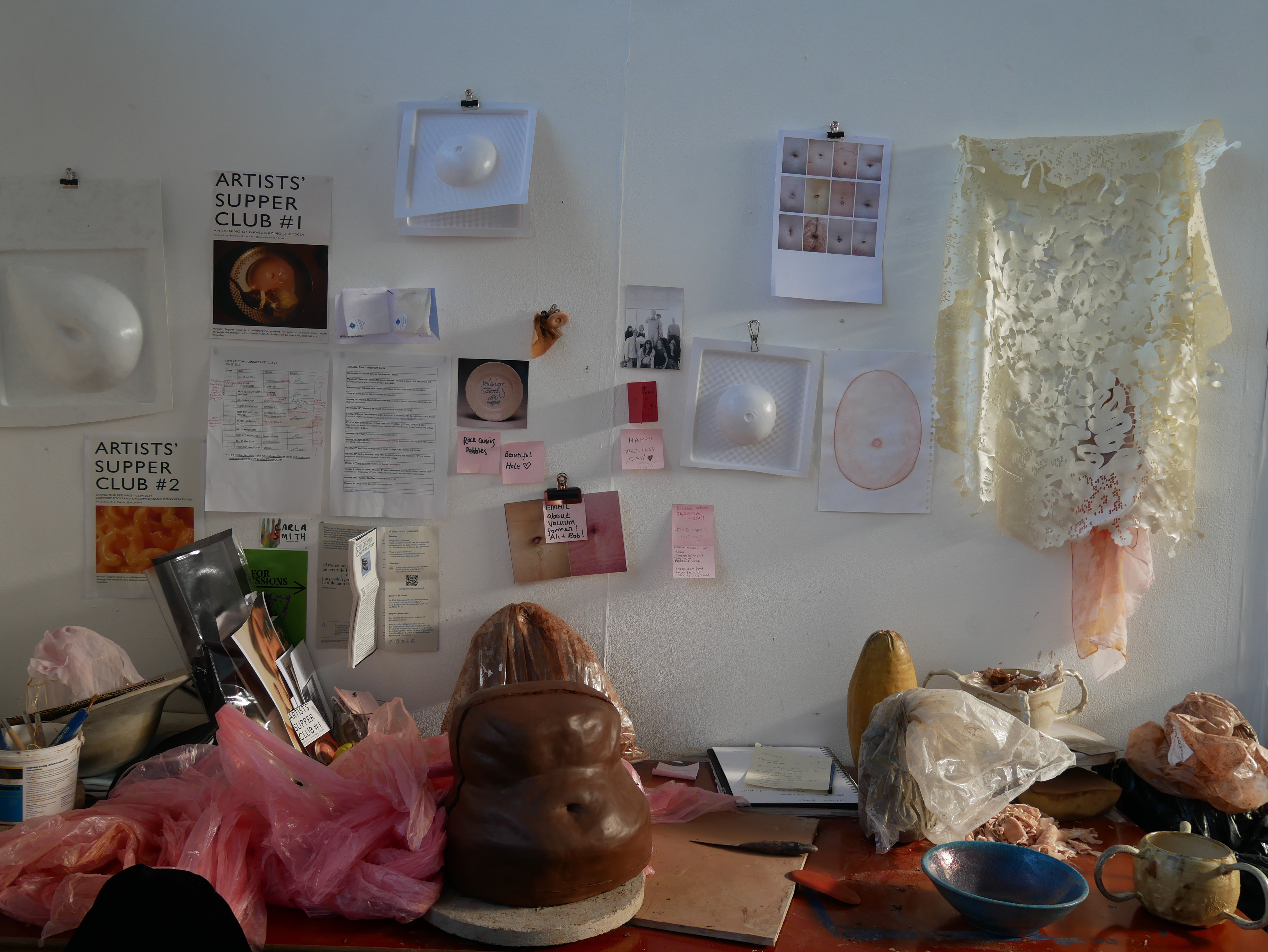 Her practice investigates the porous, holey nature of bodies, drawing from a desire to explore the inseparable nature of mind, body, and environment. Feminist philosophies and body politics feed Rowan’s creative practice, but her work is driven most simply from her own human curiosities and insecurities; from health anxieties, to sexuality, to themes of eating and conviviality.