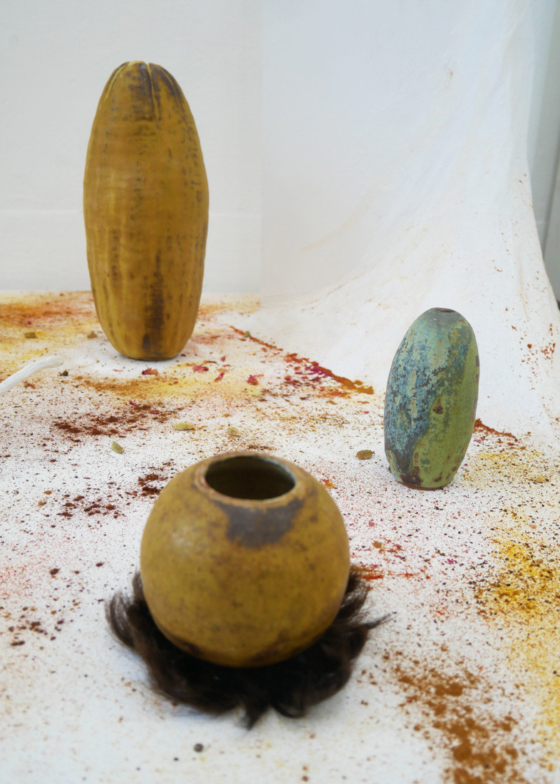 A series of sculptures in fired and unfired wet clay questioning the associations of femininity with 'the natural'.