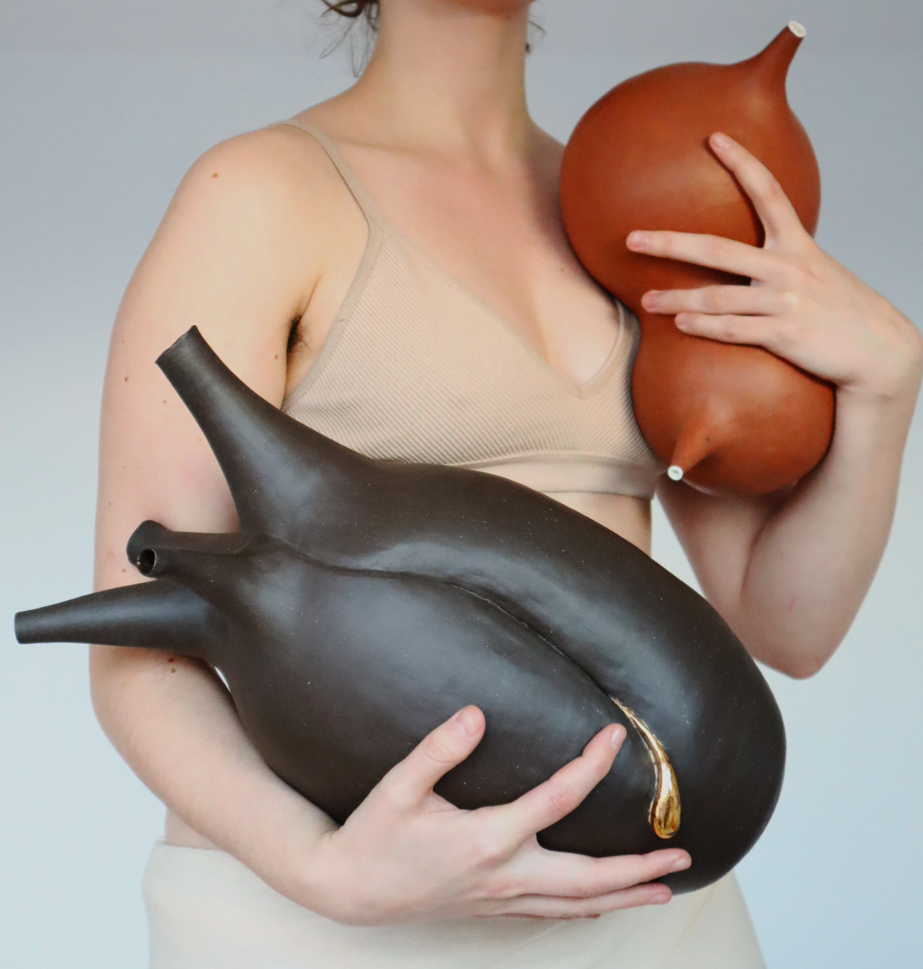 Vital Vessels are a series of ceramic sculptural vessels which are intended to be held, hugged, and cared for. Inspired by ancient examples of anatomical votives, and formed from highly imagined and inaccurate ideas of internal organs, they are designed to embody and carry the anxieties around health and the body.